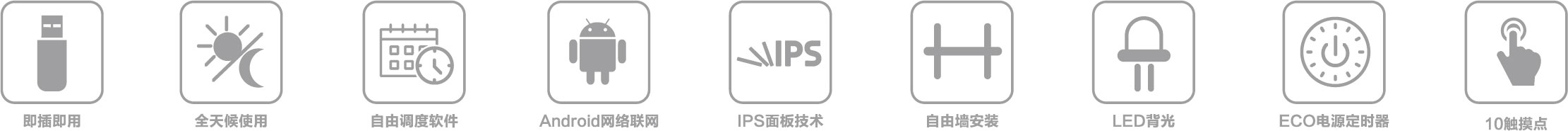 質(zhì)感拉絲金屬;高清畫(huà)質(zhì);采用紅外觸摸技術(shù),觸摸極速反應;內置WIFI;支持U盤(pán)導入內容。
